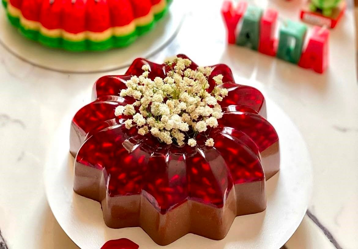 - قالبگیری: موس شکلاتی خنک شده را روی لایه ژله بریزید و به مدت 8 ساعت در یخچال قرار دهید.