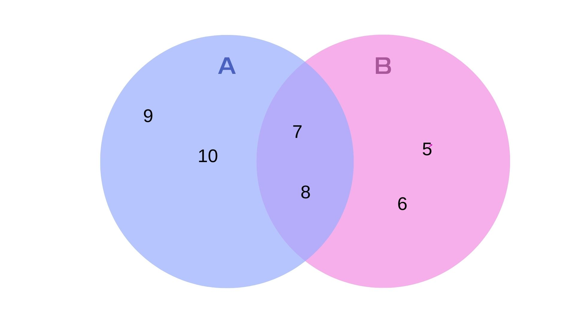 دراینجا اعضای مشترک دو مجموعه Aو B شامل ۸،۶، ۹هستند. بنابراین، اشتراک این دو مجموعه به صورت زیر خواهد بود: