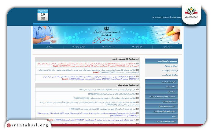 - در صفحه باز شده آخرین اطلاعیههای مربوط به ثبت نام آزمون فلوشیپ ۱۴۰۴ قابل مشاهده است.