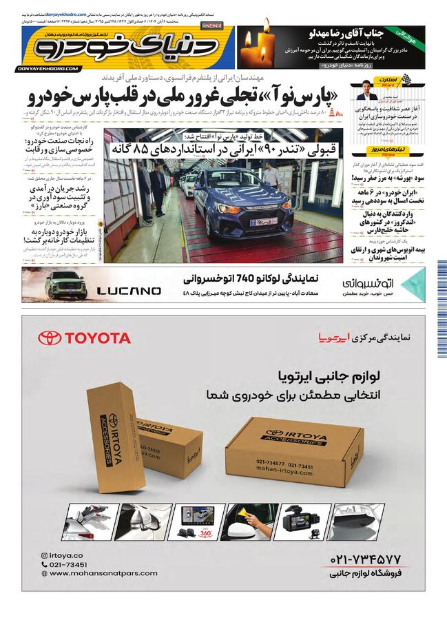 روزنامه دنیای خودرو – شماره 2426