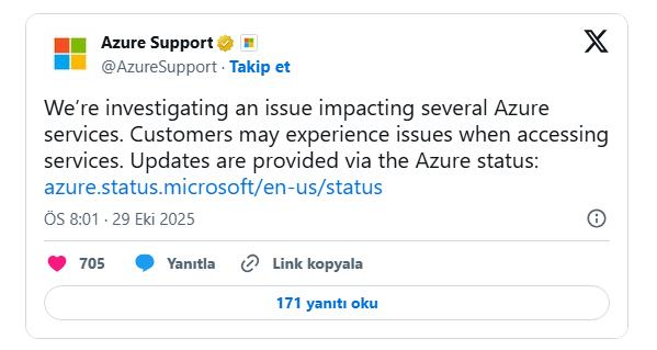بر اساس دادههای Downdetector، بیش از ۲۰ هزار کاربر آمریکایی با خطا در دسترسی به Azure مواجه شدند. این مشکل ناشی از خطای پیکربندی در بخش Front Door (شبکه توزیع محتوای Azure) و زیرساخت DNS بود. مایکروسافت در بیانیهای اعلام کرد: