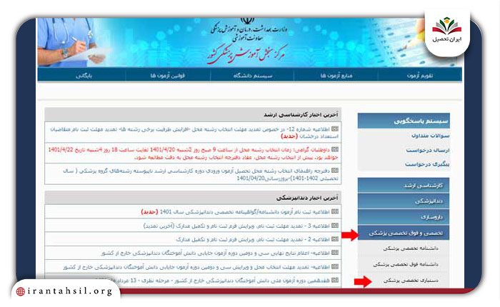 - مرحله اول: به وبسایت رسمی سازمان سنجش پزشکی مراجعه کرده و بخش مربوط به آزمونهای دستیاری دندانپزشکی را انتخاب کنید.