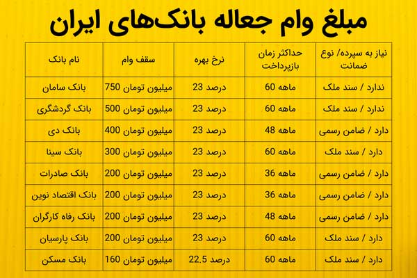 بانک ملی و بعضی بانکهای دیگر طرحهایی برای پرداخت وام تعمیرات تا سقف ۵۰۰ میلیون تومان ارائه کردهاند که معمولاً شرایط آن شامل داشتن سند ملکی، توان بازپرداخت و ارائه تضامین لازم است. این وامها ممکن است نیاز به سپرده یا ارائه ضامن داشته باشند و نرخ سود و دوره بازپرداخت بین بانکها متفاوت است؛ بنابراین قبل از اقدام مدارک شناسایی، سند ملک و فیش حقوقی یا مدارک درآمدی را آماده کنید.