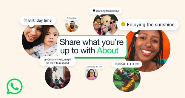 پیام About در پروفایل و بالای چتهای خصوصی نمایش مییابد. به صورت پیشفرض پس از ۲۴ ساعت حذف، اما زمان آن قابل تنظیم است. کاربران از set about در تنظیمات، حریم خصوصی آن (مخاطبان یا همه) را مدیریت میکنند. این ویژگی مشابه Notes اینستاگرام، همراه با آپدیت جدید واتساپ این هفته برای تمامی کاربران موبایل عرضه میشود.