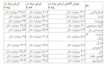 ۱۰ برند با بیشترین افت ارزش در سال ۲۰۲۵