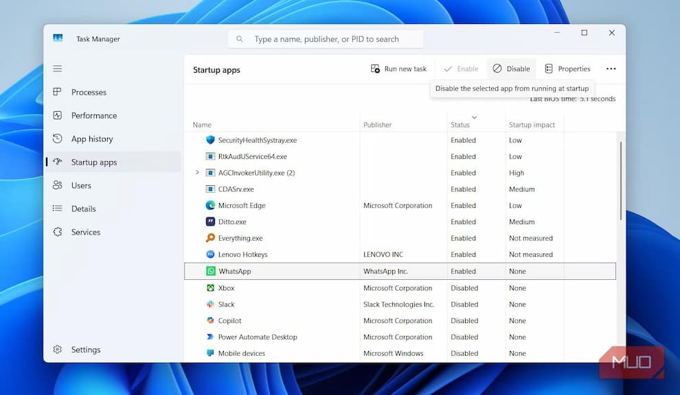این موضوع نه‌تنها سرعت بوت را کند می‌کند، بلکه حافظه RAM را نیز اشغال نگه می‌دارد؛ چون این برنامه‌ها تا زمانی که خودتان دستی نبندید، در پس‌زمینه فعال می‌مانند.