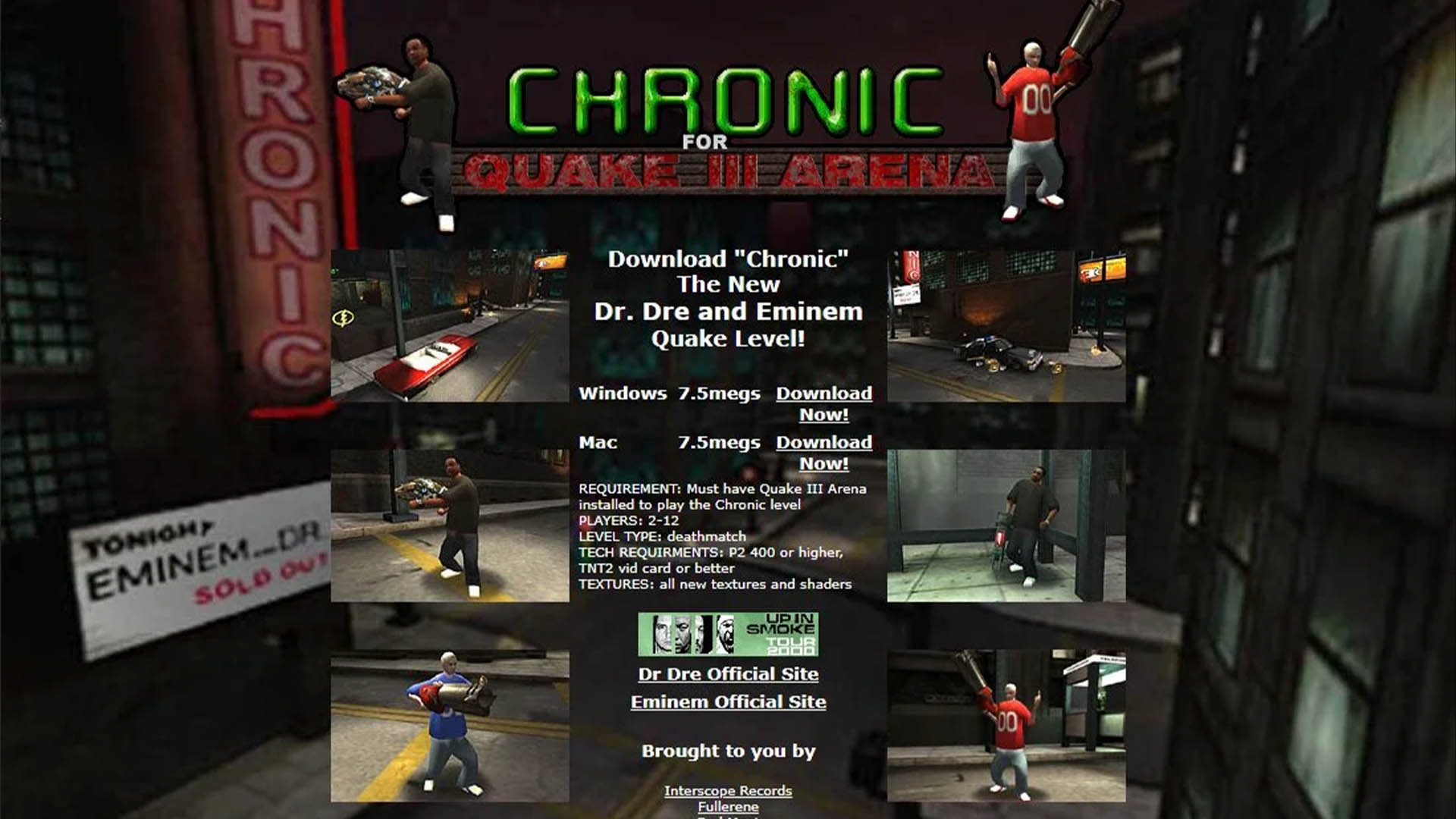 Interscope Records در ادامه با استخدام تعدادی مادِر، یک ماد رسمی برای Quake III Arena ساخت که در آن میتوانستید در نقش امینم یا دکتر دره به جنگ دیگر بازیکنان بروید. این ماد برای تبلیغ آلبوم جدید دره یعنی 2001 ساخته شده بود و نقشه آن Chronic (آلبوم قبلی دکتر دره) نام داشت. نسخه بیکلام The Real Slim Shady نیز مدام در پسزمینه برای هواداران پخش میشد. Interscope Records مدتهاست که ماد The Chronic را به صورت رسمی از دسترس خارج کرده است.