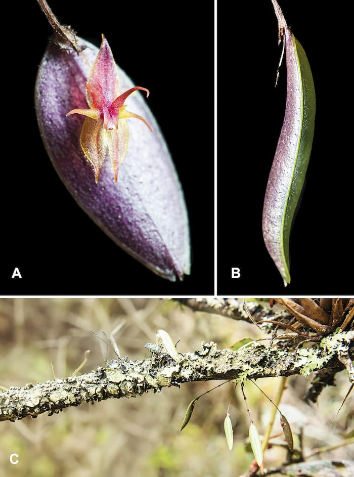 در جنگلهای ابری و نواحی چمنی موسوم به «پارامو» که بالاتر از خط درختی قرار دارد، این ارکیده روی شاخههای درختان رشد میکند. هر بوته تنها چند سانتیمتر ارتفاع دارد و برگهای ضخیم همراه با گلهای قرمز و طلایی دارد که زیر برگ میزبان قرار میگیرند.