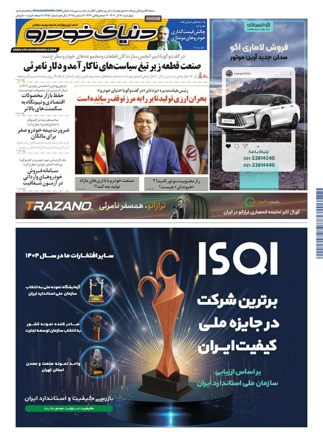• روزنامه دنیای خودرو – شماره 2451