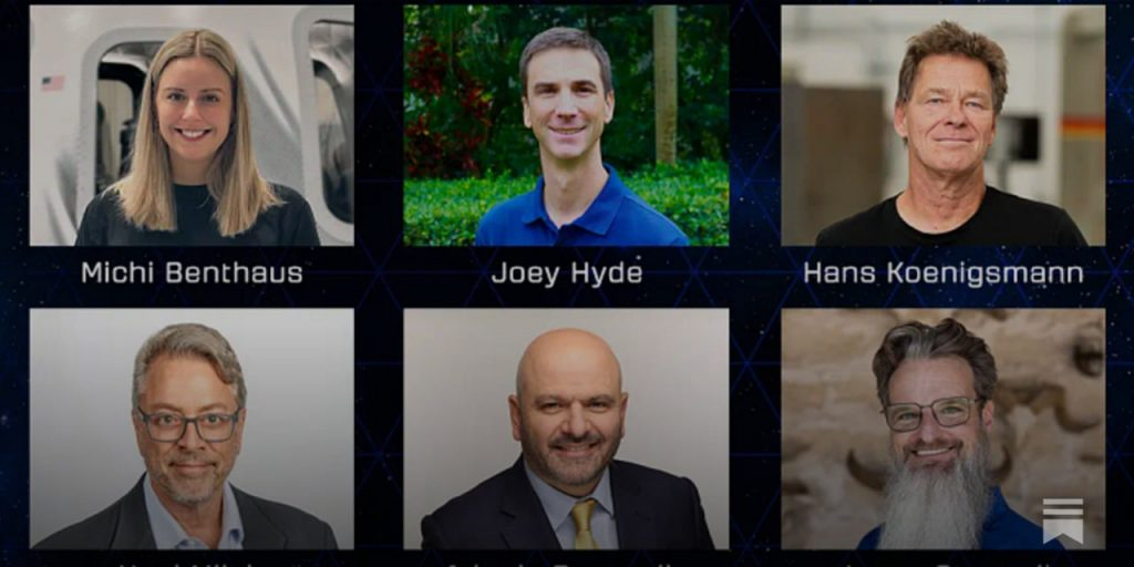 «جویی هاید»، سرمایه‌گذار و فارغ‌التحصیل دکتری اخترفیزیک، «هانس کونیکسمن»، مهندس هوافضای آلمانی–آمریکایی، «نیل میلچ»، کارآفرین، «آدونیس پورولیس»، مهندس معدن و فعال حوزه انرژی و منابع طبیعی و «جیسون استنزل» دیگر مسافران آن هستند.