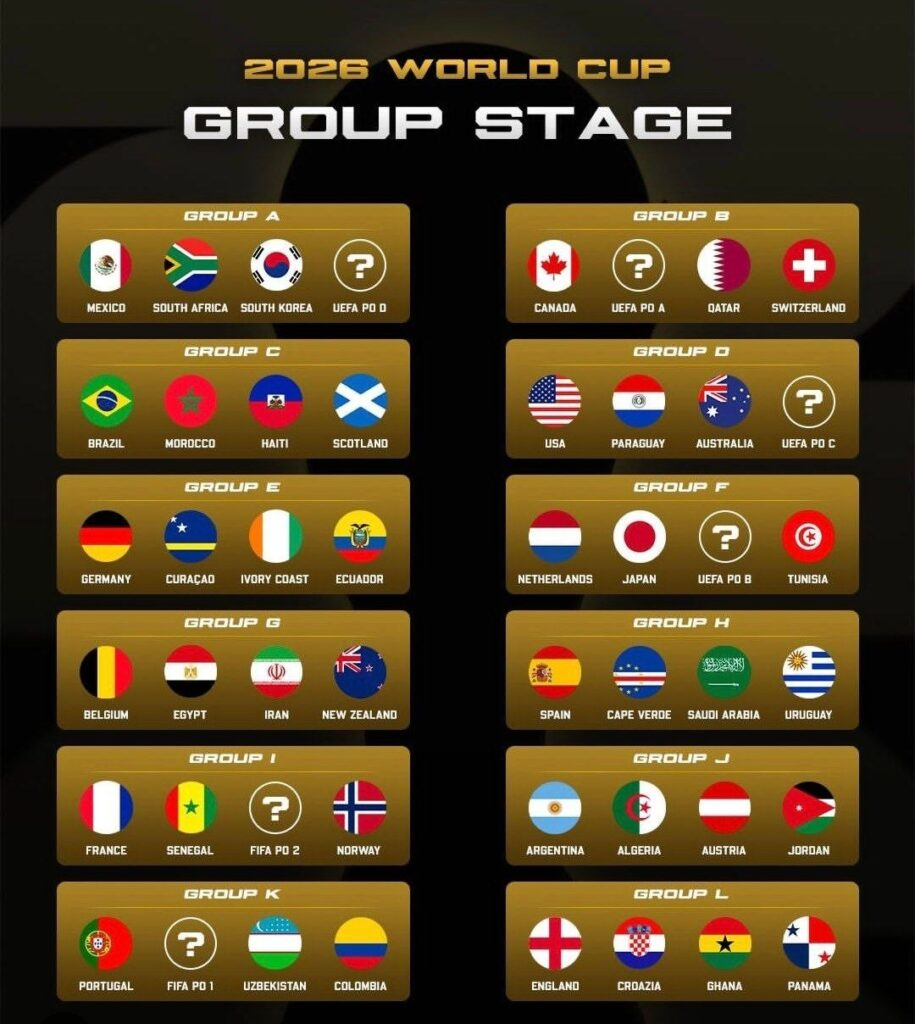 جدول کامل گروه‌بندی تیم‌های حاضر در جام جهانی ۲۰۲۶