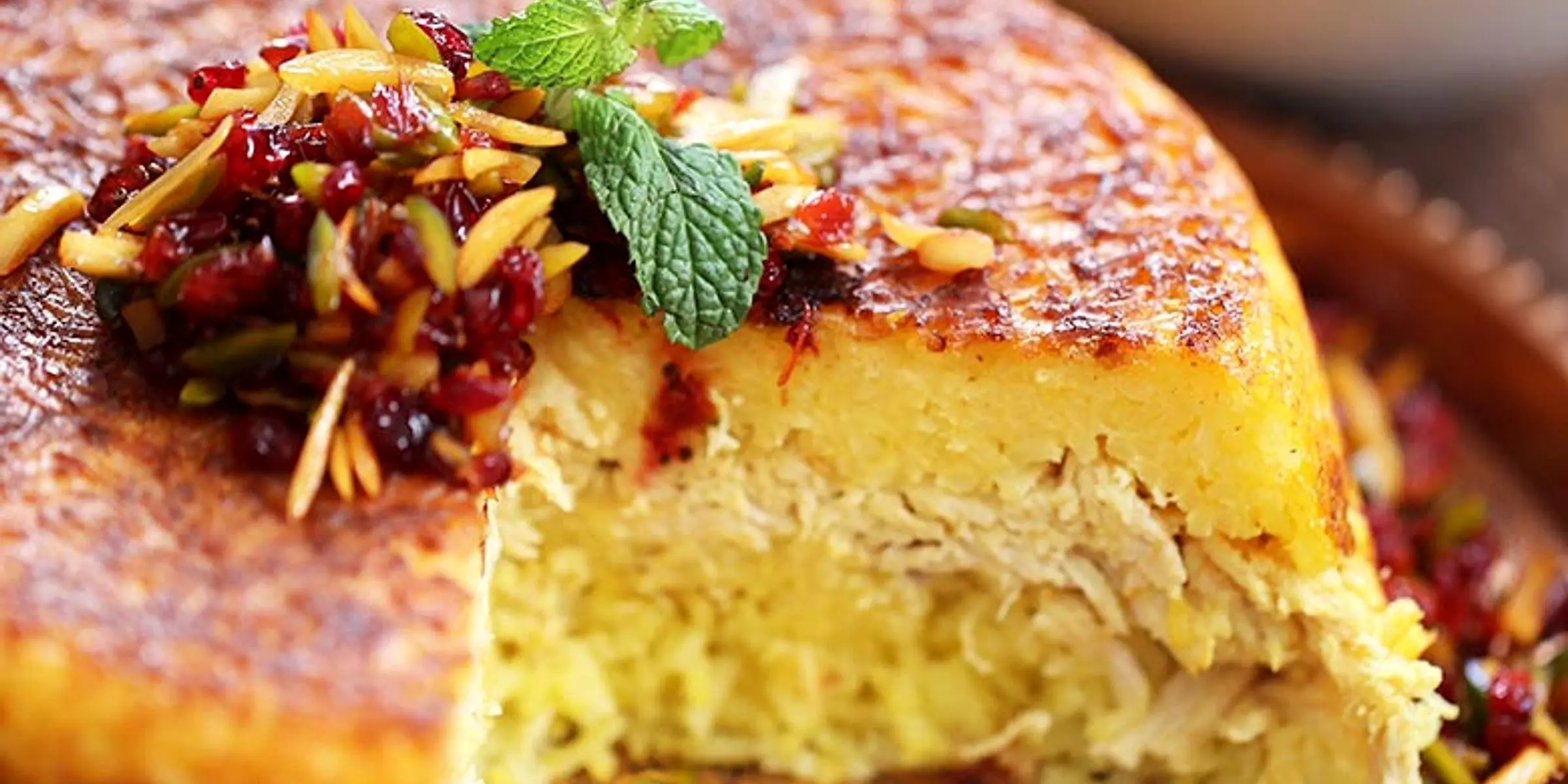 نشانهی آماده شدن تهچین، طلایی و سفت شدن لبهها و کف آن است. پس از پخت، اجازه دهید تهچین کمی خنک شود، سپس آن را در ظرف سرو برگردانید و با زرشک و خلال پسته تزیین کنید.