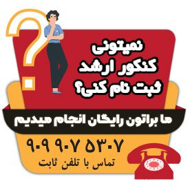 برای راهنمایی کامل، همین حالا با مشاوران ایرانتحصیل از تلفن ثابت و بدون نیاز به گرفتن کد، با شماره ۹۰۹۹۰۷۵۳۰۷ تماس بگیر تا فرم ثبتنامت بدون هیچ خطا و مطابق آخرین ضوابط سازمان سنجش تکمیل شود.