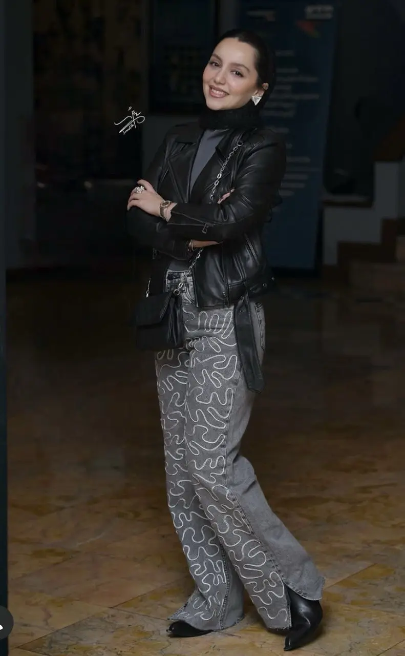ستون اصلی (مشکی): کت چرم مشکی به عنوان لایهی اصلی و ستون محوری استایل عمل میکند. چرم، بافت مات و قویای ایجاد میکند که حس قدرت و جدیت را به تصویر میکشد.