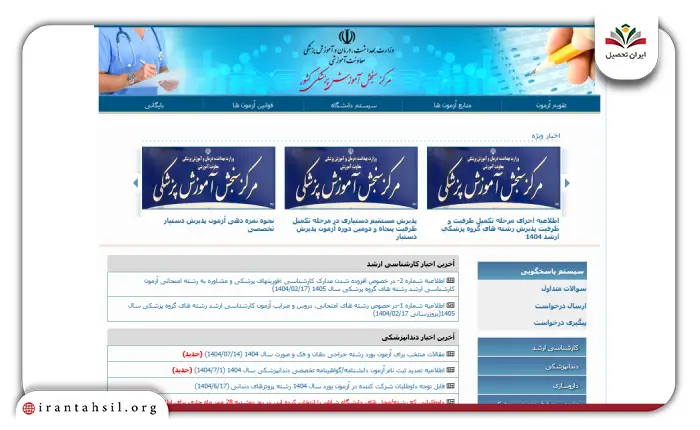 | مرکز سنجش آموزش پزشکی | https://www.sanjeshp.ir | ثبت اطلاعات اولیه، بارگذاری مدارک، پرداخت هزینه آزمون و دریافت کد رهگیری |